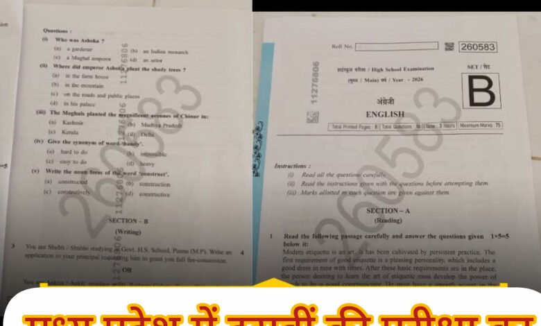 एमपी बोर्ड परीक्षा का कक्षा 10वीं का प्रश्न पत्र व्हाट्सएप स्टेटस पर वायरल हो गया।