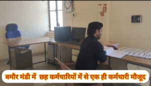 मुरैना जिले की बामोर तहसील स्थित कृषि उपज मंडी समिति कार्यालय में कर्मचारियों की लापरवाही और गैरहाजिरी का मामला सामने आया है। आरोप है कि मंडी समिति के कई कर्मचारी नियमित रूप से कार्यालय नहीं पहुंच रहे, इसके बावजूद उनकी उपस्थिति दर्ज हो रही है और उन्हें शासन से पूरा वेतन भी मिल रहा है। इससे सरकारी कार्य प्रभावित हो रहे हैं और किसानों को परेशानियों का सामना करना पड़ रहा है।